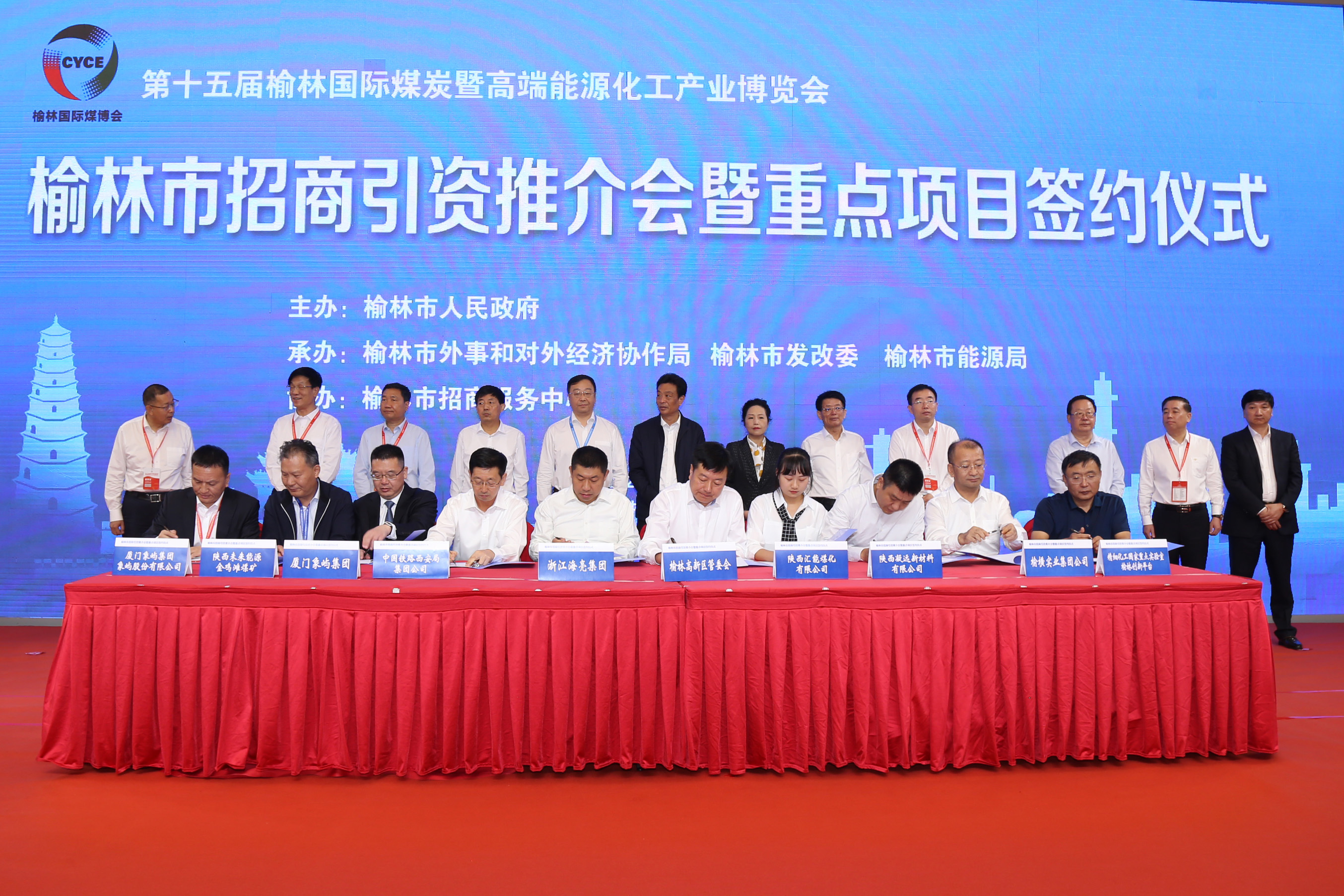 9月10日,第十五屆榆林國際煤炭暨高端能源化工產業博覽會上,榆林市舉行招商引資推介會暨重點項目簽約儀式。象嶼集團與中國鐵路西安局集團有限公司、陜西未來能源化工有限公司簽訂戰略合作協議,攜手搭建“公轉鐵”綠色運輸大通道,促進榆林煤炭資源的有效釋放與利用。