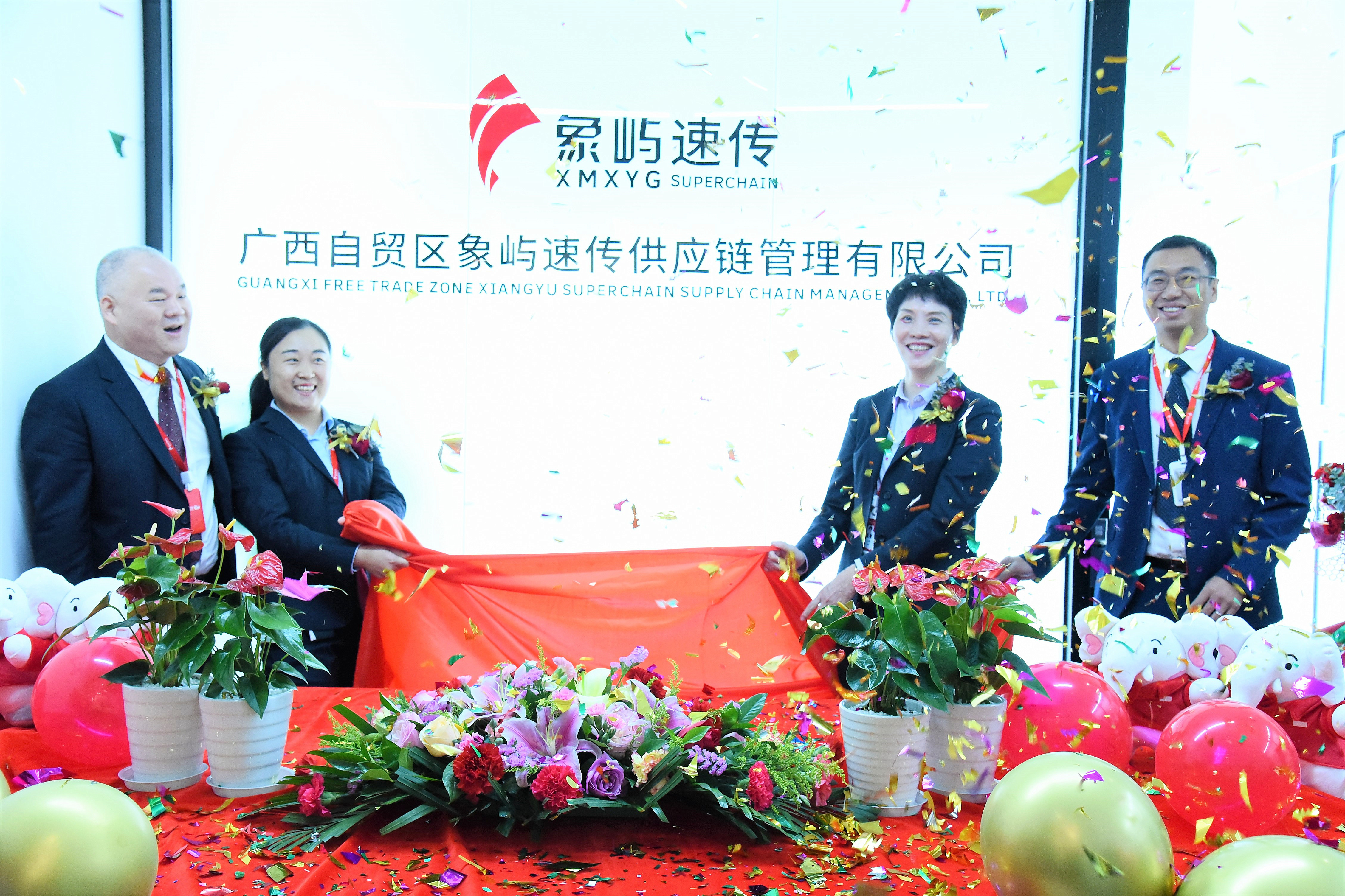 象嶼股份黨委委員、副總經理、象嶼速傳總經理肖靜勤,象嶼股份物流總監、象嶼速傳副總經理孫剛,廣州象嶼、廣州速傳總經理杜靜靜,象嶼速傳西南物流事業部、廣西象嶼速傳副總經理伍韜等為公司揭牌。