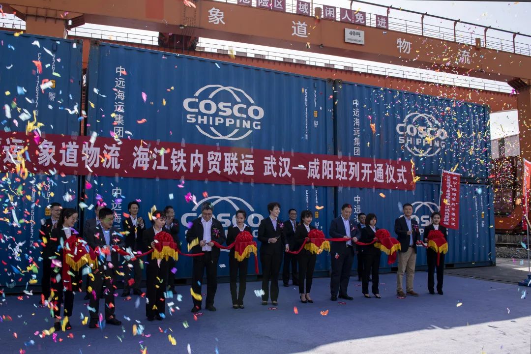 4月28日,象嶼股份旗下象道物流與泛亞航運聯合推動的海江鐵內貿聯運武漢-咸陽班列正式開通,象嶼股份黨委委員、副總經理、象道物流黨支部書記肖靜勤,泛亞航運黨委書記宋濤,中遠海運集運供應鏈發展部副總經理王振濤,武漢中遠海運黨委書記王志良,青島中遠海運副總經理趙佳等人出席剪彩儀式。