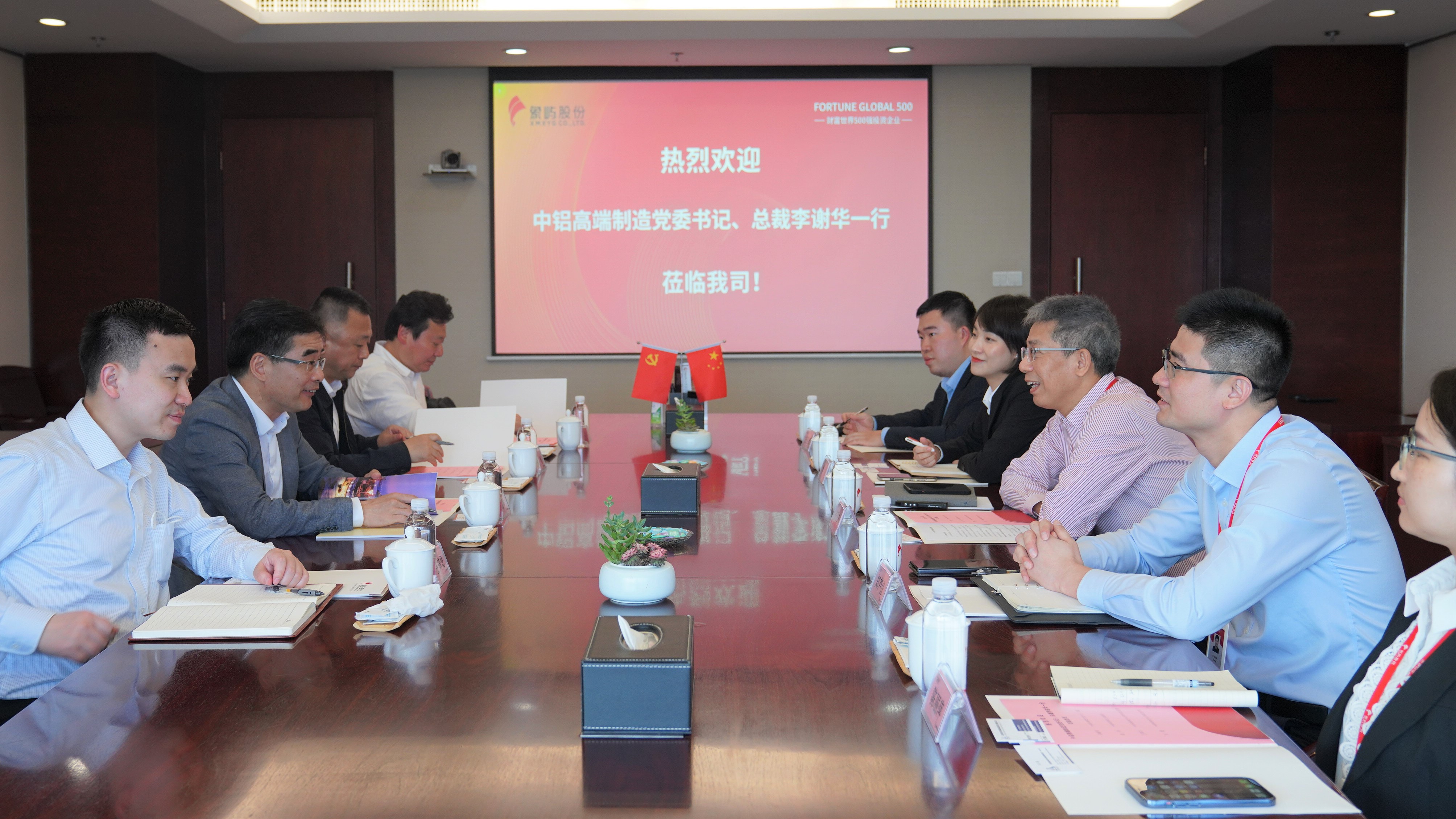中鋁高端制造股份有限公司總裁助理曲明、綜合管理部總經理王琦龍,中鋁高端制造供應鏈公司副總經理宋瑾隨同來訪;象嶼股份運營管理副總監曹靈,象嶼鋁晟總經理助理陳麗萍等陪同接待。
