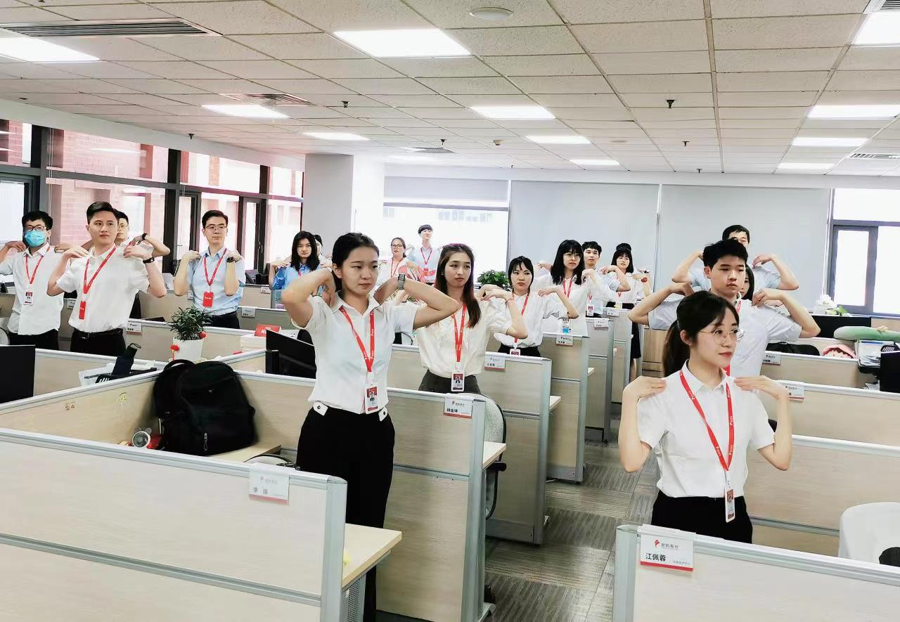 簡單易學的工間操緩解了大家的工作壓力,放松了身心,起到了良好的鍛煉效果。通過短短幾分鐘的運動時間,調動了大家參與全民健身的積極性,提振精氣神,讓大家“元氣滿滿”投入到后續的工作當中!簡單有效的健身方式,你還在等什么?趕緊一起來跳工間操吧!